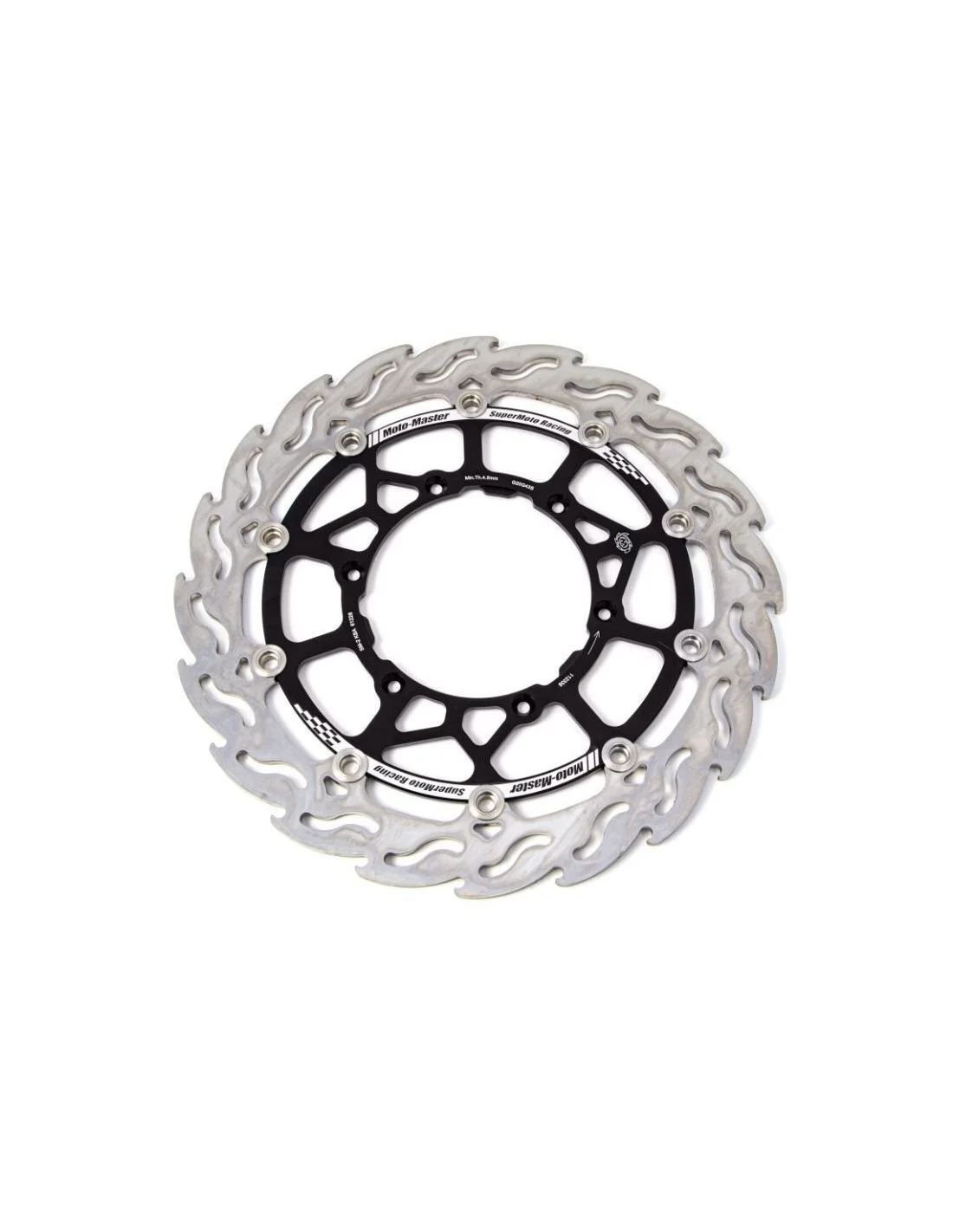 - Der zentrale Bremsscheibenteil ist aus eloxiertem Aluminium und die Scheibendicke ist mit 5 mm größer als die der serienmäßigen Supermoto Moto-Master Bremsscheiben.