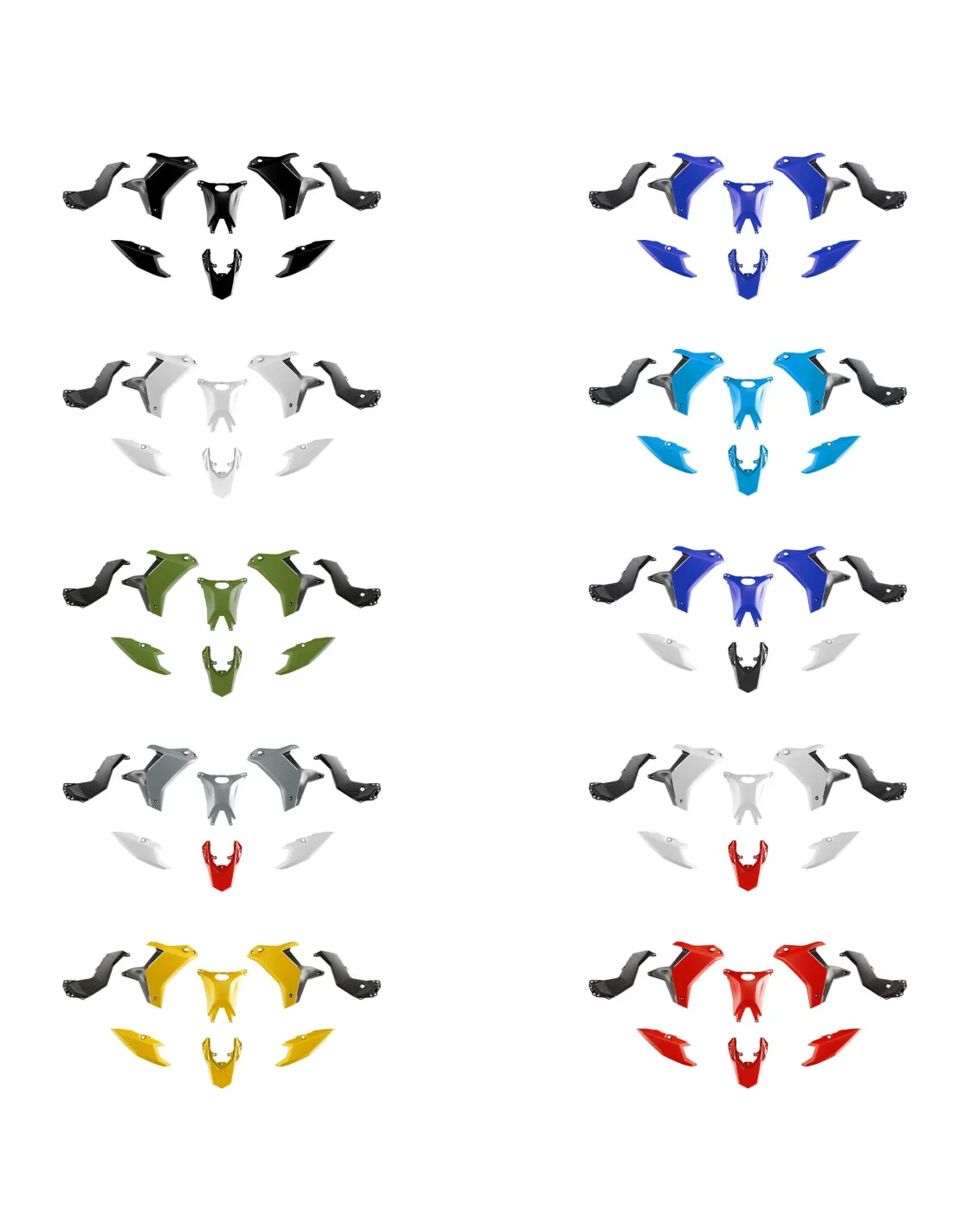 Bestehend aus einem Paar Förderbänder, einer Tankabdeckung, einem Paar mittlerer Seitenverkleidungen, einem Paar hinterer Seitenverkleidungen und einem hinteren Kotflügel, verwendet die Original-Hardware und muss nicht geändert werden, einfach zu montieren!