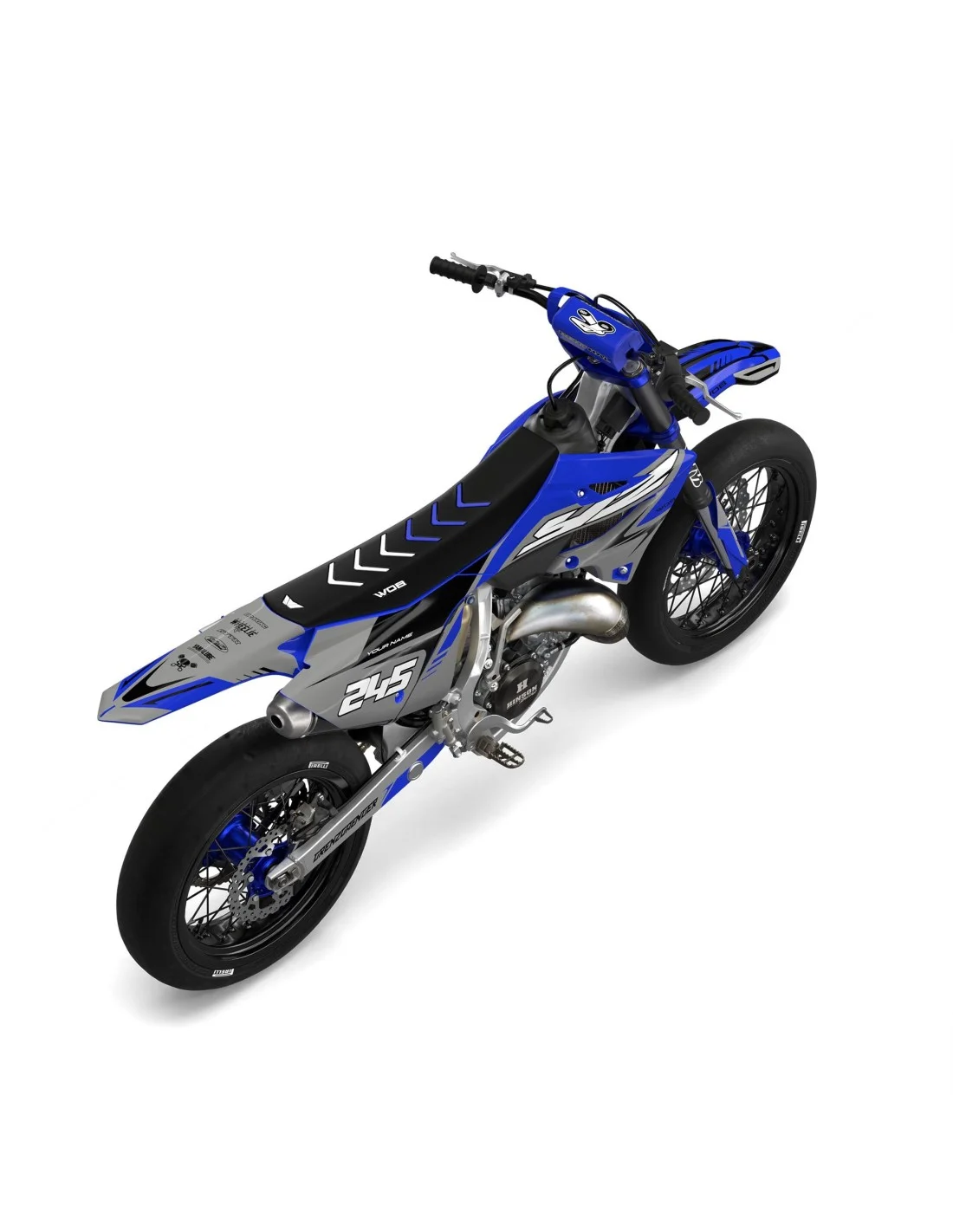 Tous les styles graphiques sont adaptables à n’importe quelle marque et année de moto. Si vous ne trouvez pas le graphisme que vous souhaitez dans votre section vélo, contactez-nous et nous le réaliserons !