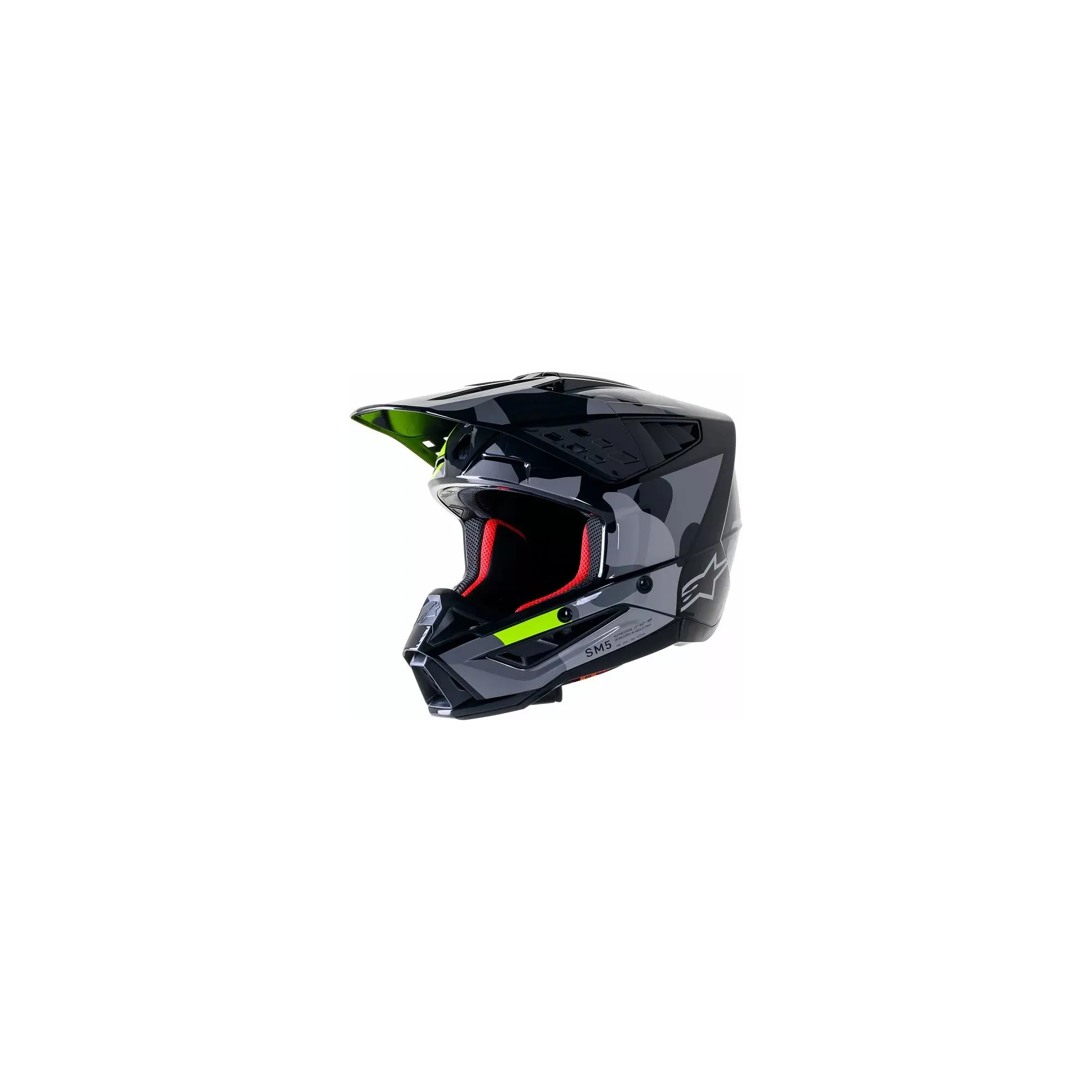 Le casque SM5 est conçu pour offrir aux pilotes de MX un casque sûr et spécialement conçu pour offrir une protection et un confort optimaux. Le casque léger SM5 est doté d'une coque thermo-injectée qui incorpore un mélange spécial de polymères renforcé par différents degrés d'épaisseur, conçu pour offrir une combinaison optimale de protection contre les chocs et de légèreté, tandis que la doublure EPS à cinq densités assure la bonne densité dans la bonne zone pour une meilleure absorption des chocs.