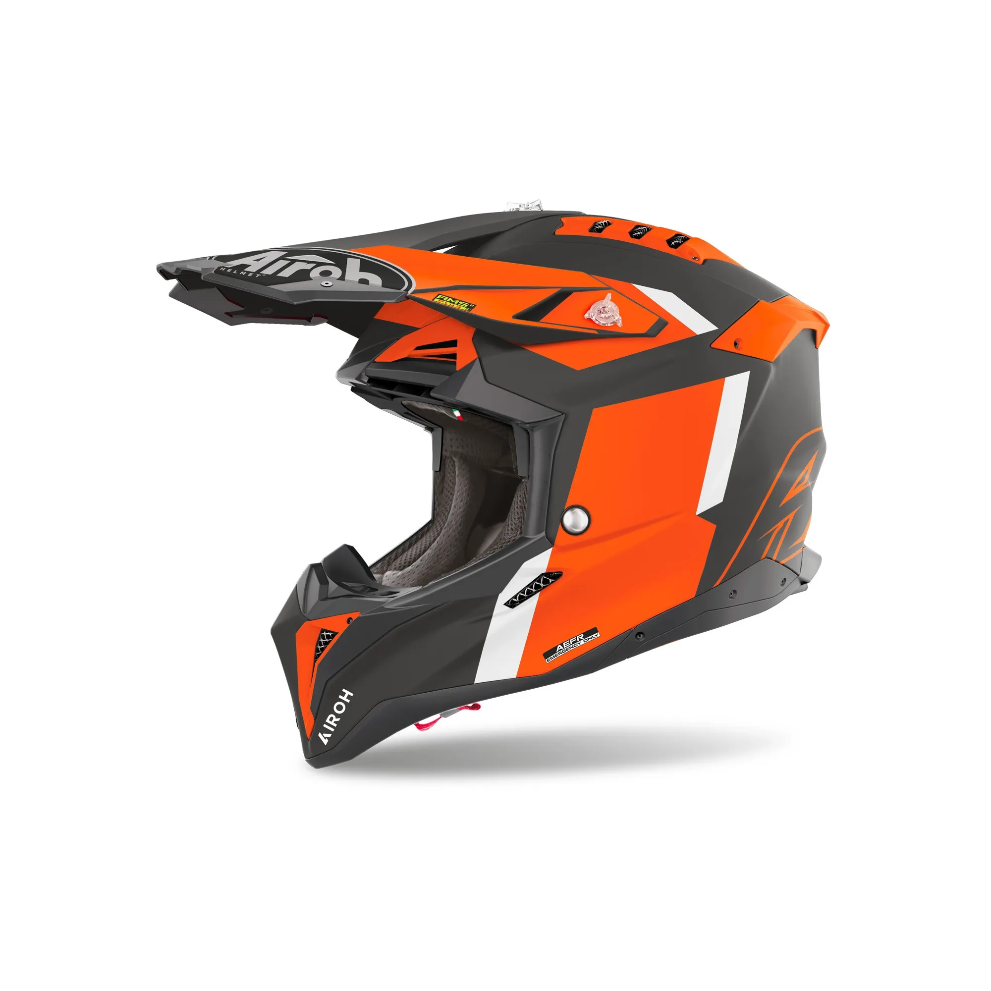 La somme technologique d'Airoh est condensée dans ce nouveau produit, qui présente les systèmes AMS2 Plus (Airoh Multiaction Safety System Plus), AEFR (Airoh Emergency Fast Release) et AMLS (Airoh Magnetic Lining System), qui a évolué pour inclure des coussinets magnétiques pour les joues.