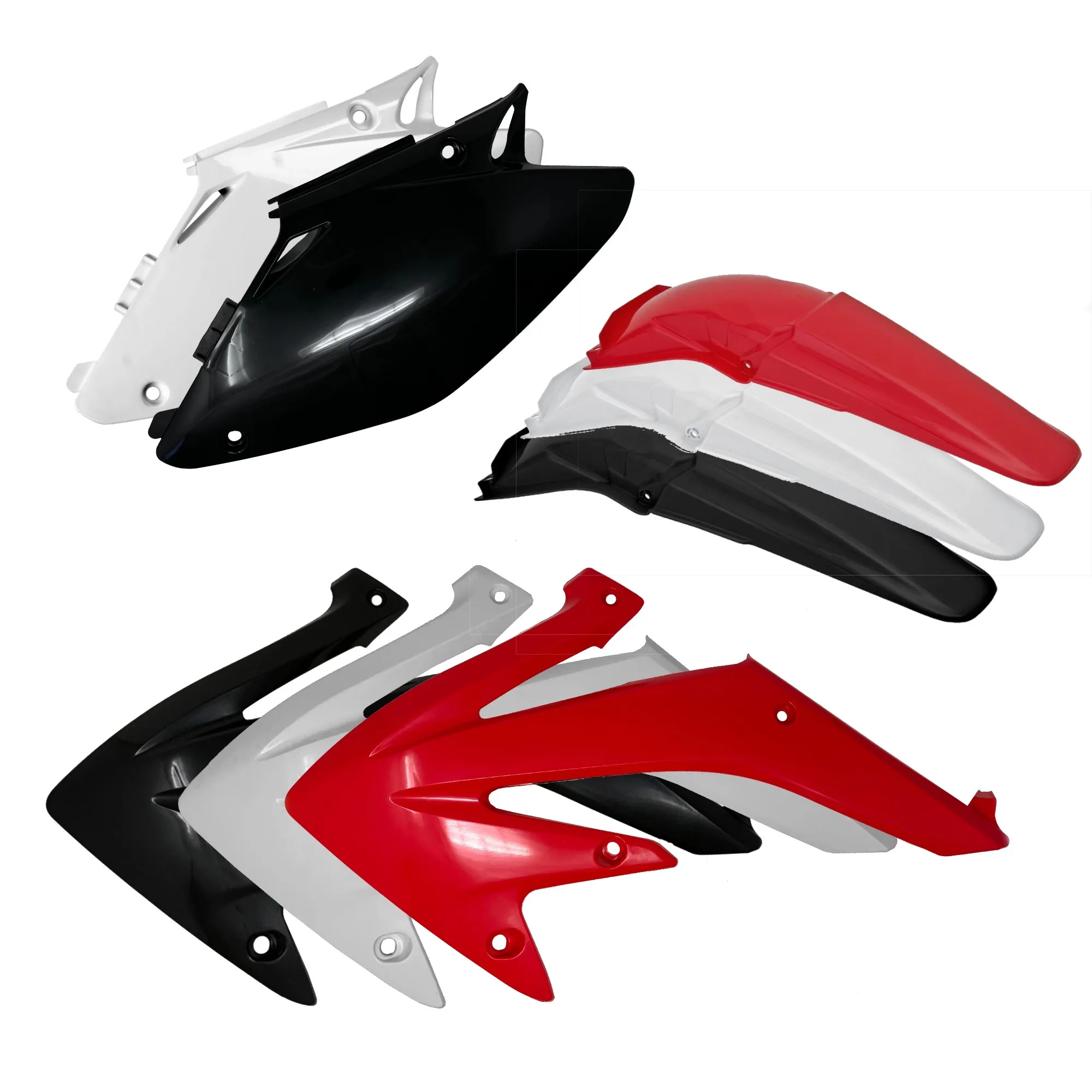 Kit en plastique composé d'une paire de convoyeurs, d'un garde-boue arrière et de plaques latérales.