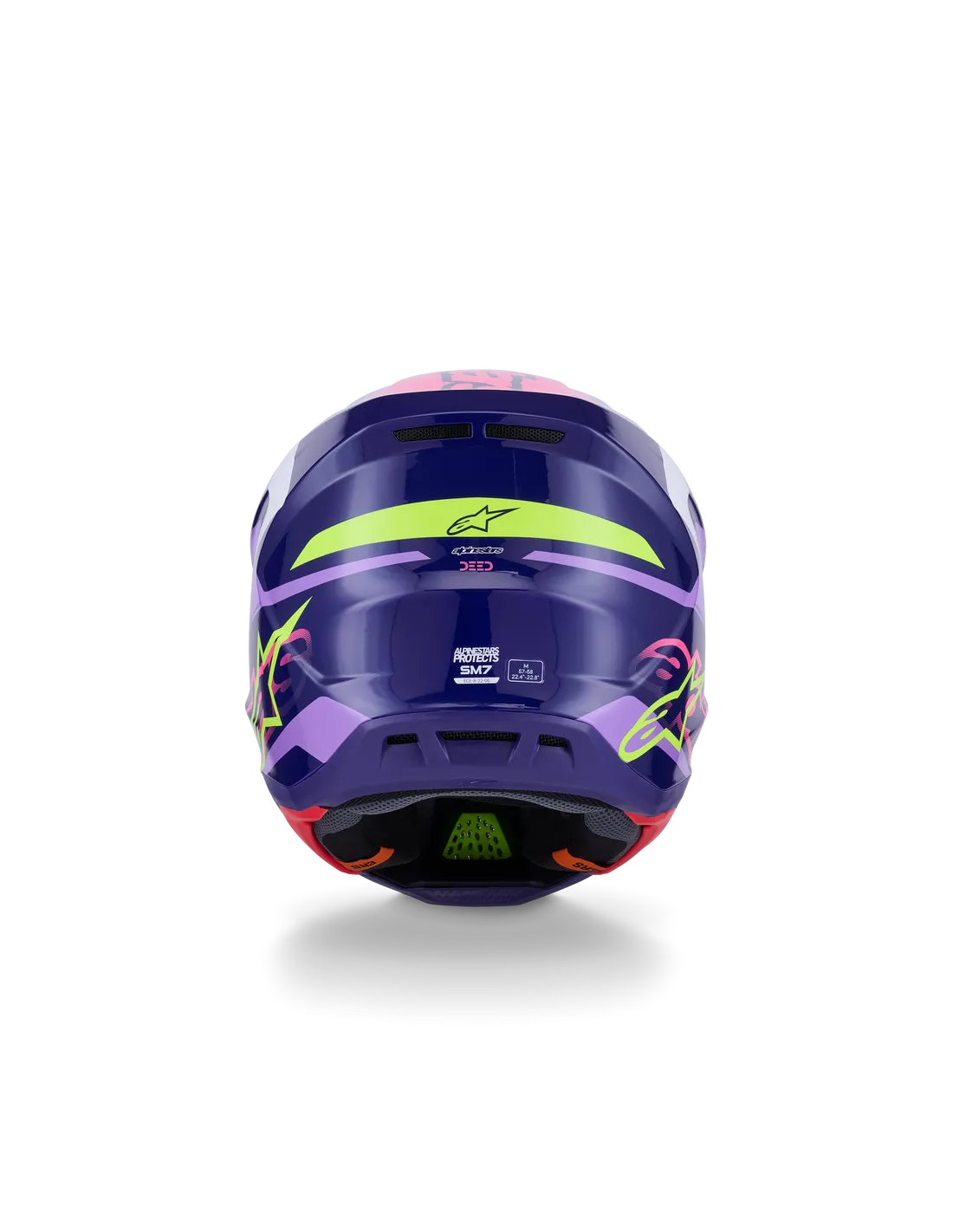 Une protection spécifique contre les impacts rotationnels est assurée par la combinaison de la forme interne et du revêtement spécifique de la coque EPS, associée à une surface spécialement développée dans le revêtement de confort. Cette technologie de revêtement spécifique brevetée par Alpinestars réduit l'accélération rotationnelle transmise à la tête du pilote : le casque S-M7 dépasse la nouvelle norme ECE 22.06 d'accélération rotationnelle maximale de 76 %.