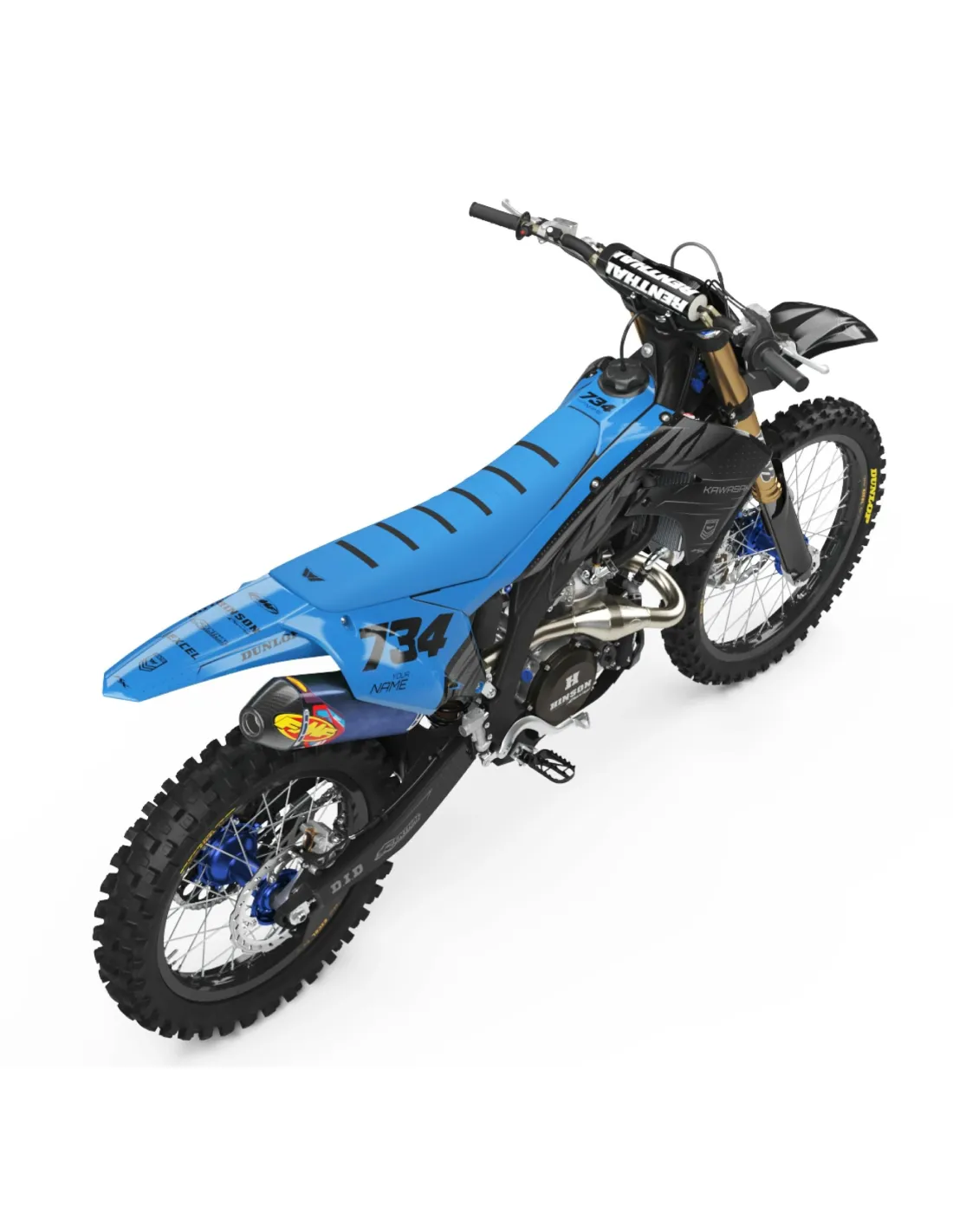 Le kit comprend : convoyeurs, garde-boue avant, garde-boue arrière, boîte à air, tableau avant, tableaux latéraux, protège-tiges, bras oscillant et, sur certains modèles, également le réservoir.