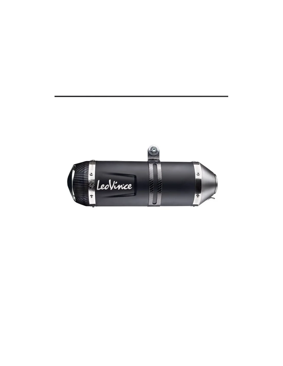 Features a stainless steel muffler sleeve with a unique metallic black paint applied using ceramic engineering techniques to create a highly temperature resistant finish Mounting bracket and muffler flanges are TIG welded AISI 304 stainless steel for added strength The exhaust end cap is made of stainless steel with an asymmetrical and aggressive design The Leo Vince logo is laser engraved on the muffler Meets EVO II approval requirements The silencer comes with the dB killer insert installed; the insert is removable