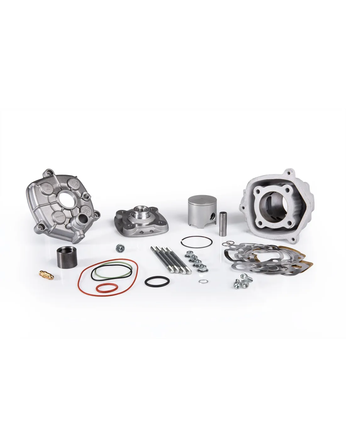Manufactured from a special high-silicon and titanium aluminum alloy, the cylinder ensures excellent thermal stability and resistance to deformation at high temperatures. Advanced heat treatments provide high strength and dimensional stability up to 250°C. Precision CNC machining guarantees extremely tight tolerances. The bore features a nickel–silicon carbide coating for exceptional hardness and wear resistance, while the internal finish is optimized for ideal lubrication and sliding performance. Port timings for exhaust and transfers are specifically designed for racing applications and extensively tested on dynamometers and racetracks.