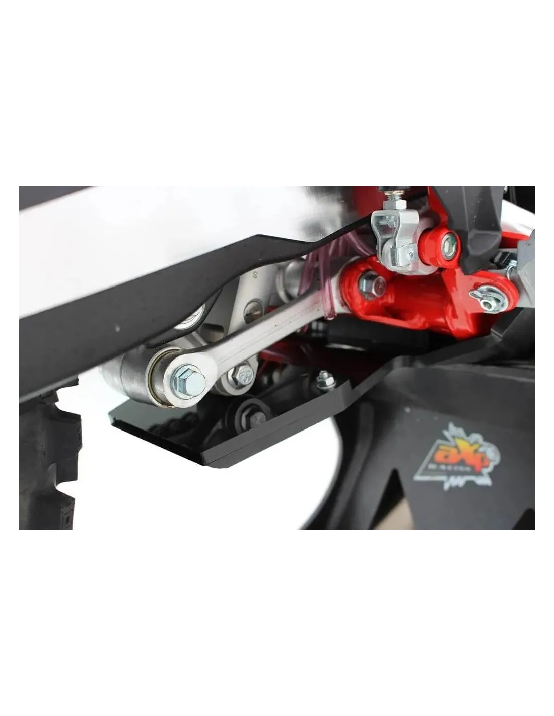 Made of 8mm thick high-density polyethylene plastic, the skid plate offers a full protection to the cases, the frame until the footpegs, the radiator hose and the linkage.