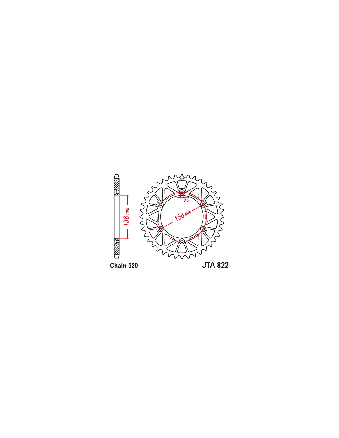 Corona In Acciaio JT Sprocket passo 520-Beta-Husq-Gasgas 822corona