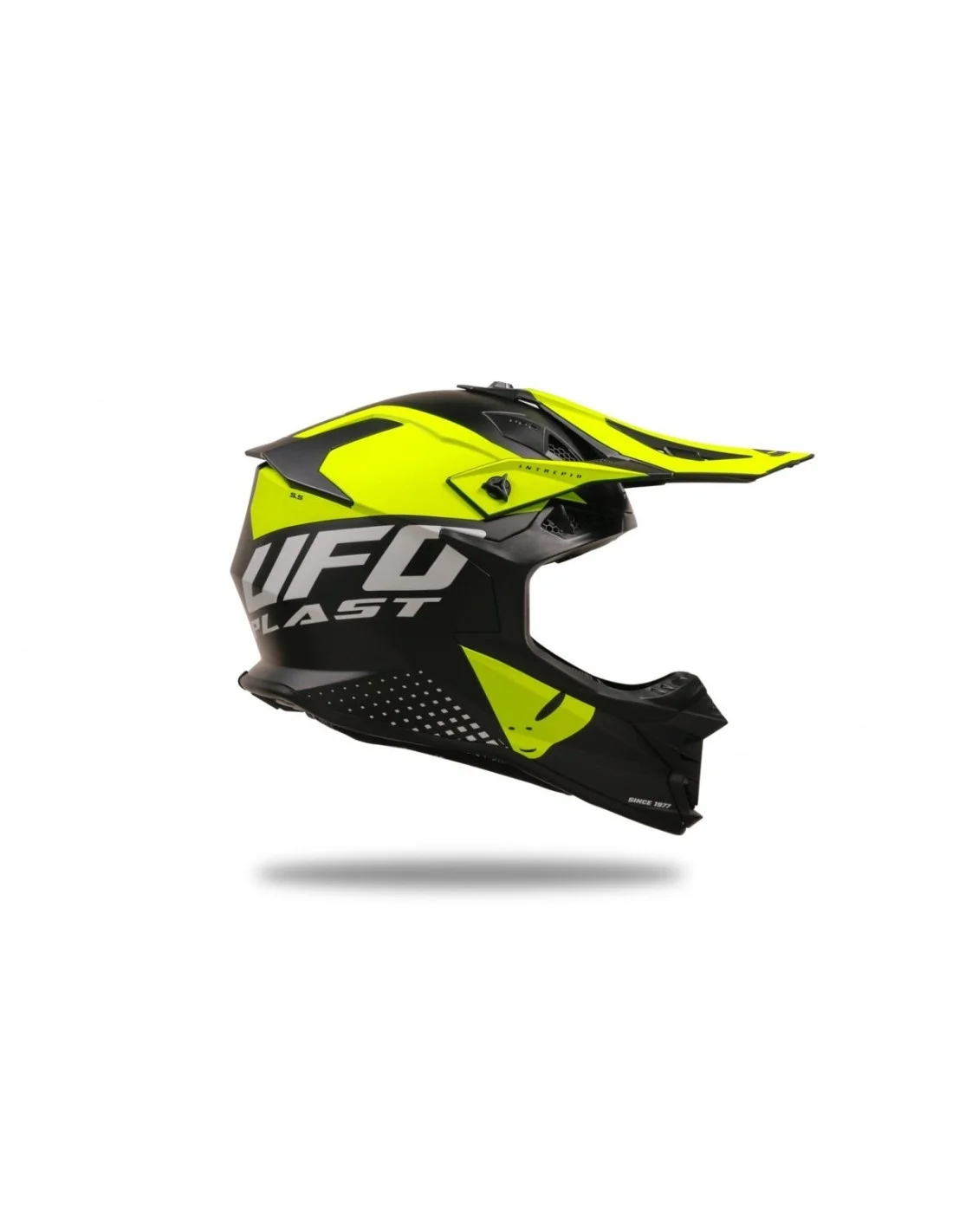 Casco motocross Intrepid di UFO Plast in resina termoplastica ad altissima resistenza
