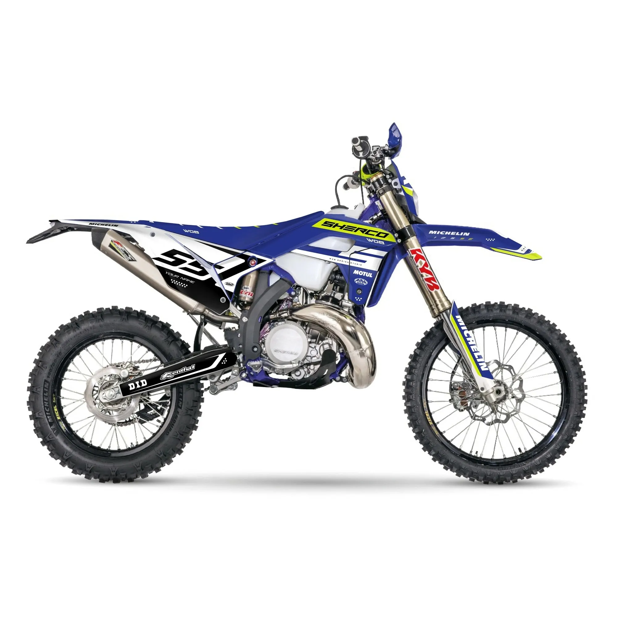Kit grafiche “Racing Blue” per moto Sherco SE, SEF e per tutti i modelli nella lista presente nella sezione “modello moto” sottostante.