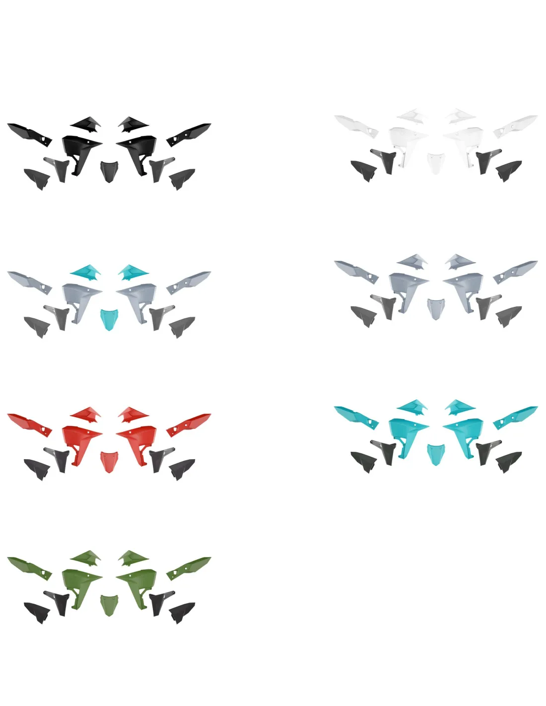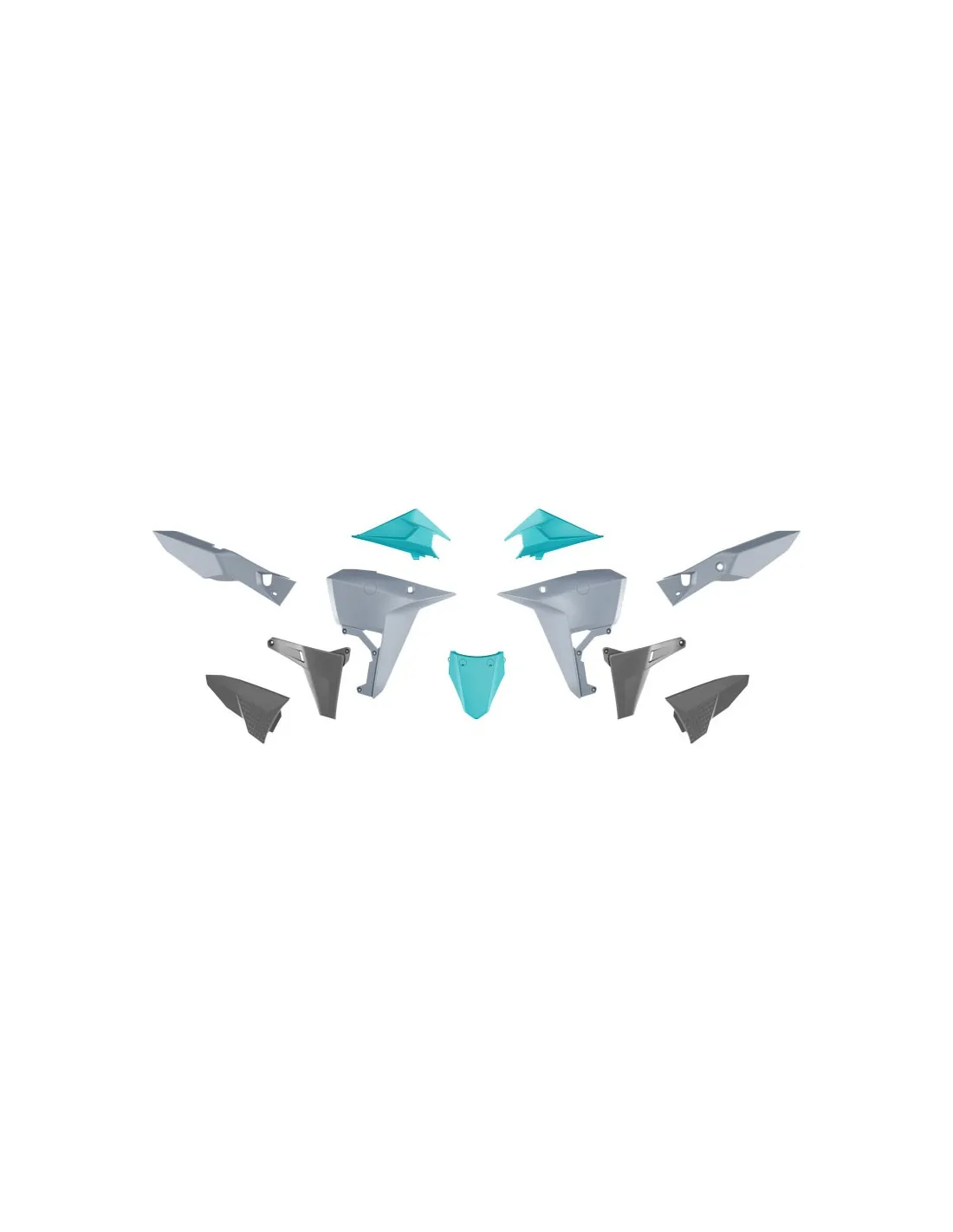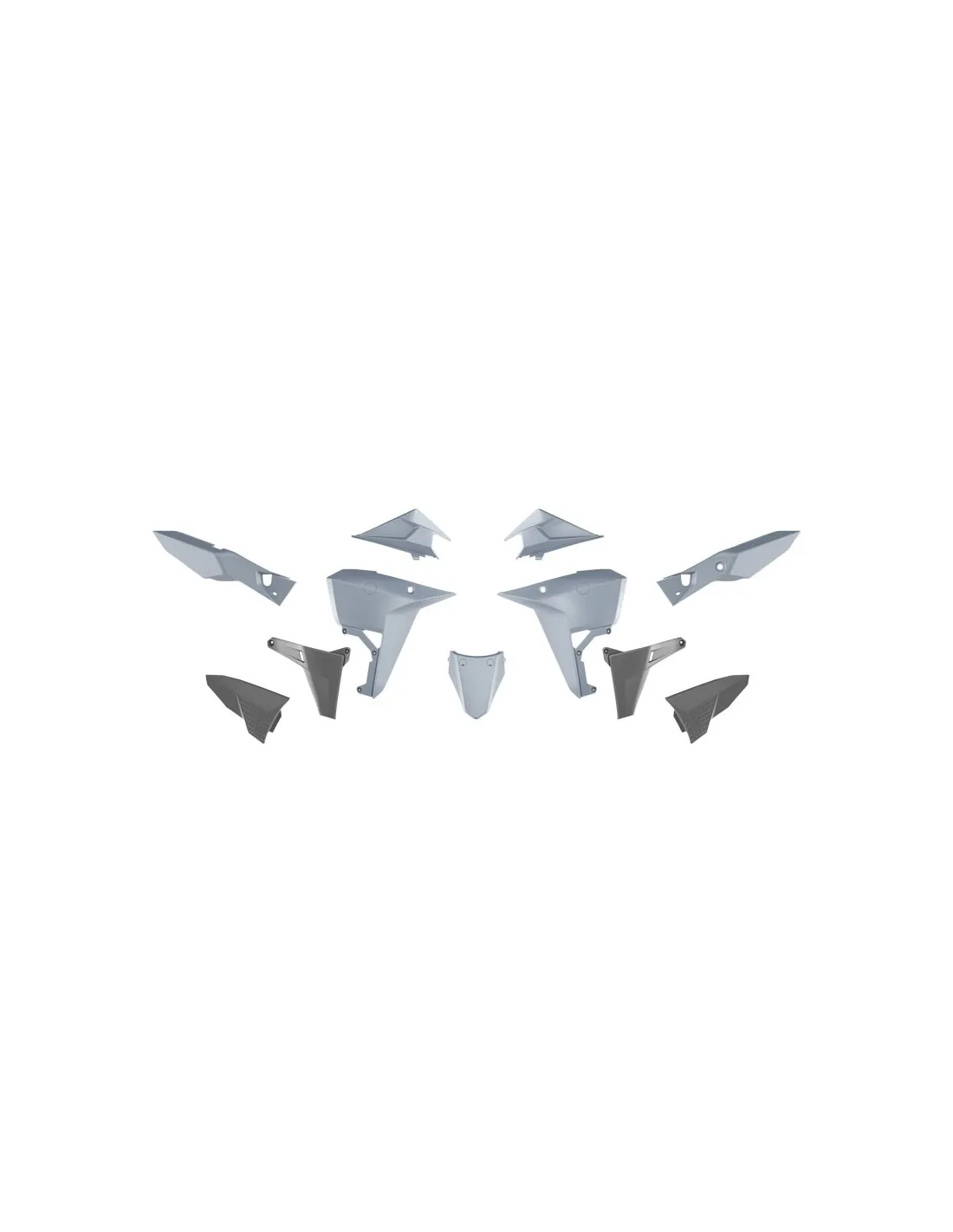 Composto da coppia convogliatori, copriserbatoio, coppia fianchetti centrali, coppia fianchetti portanumero laterali posteriori e parafango posteriore, usa la viteria originale senza bisogno di modifiche, facile da montare!