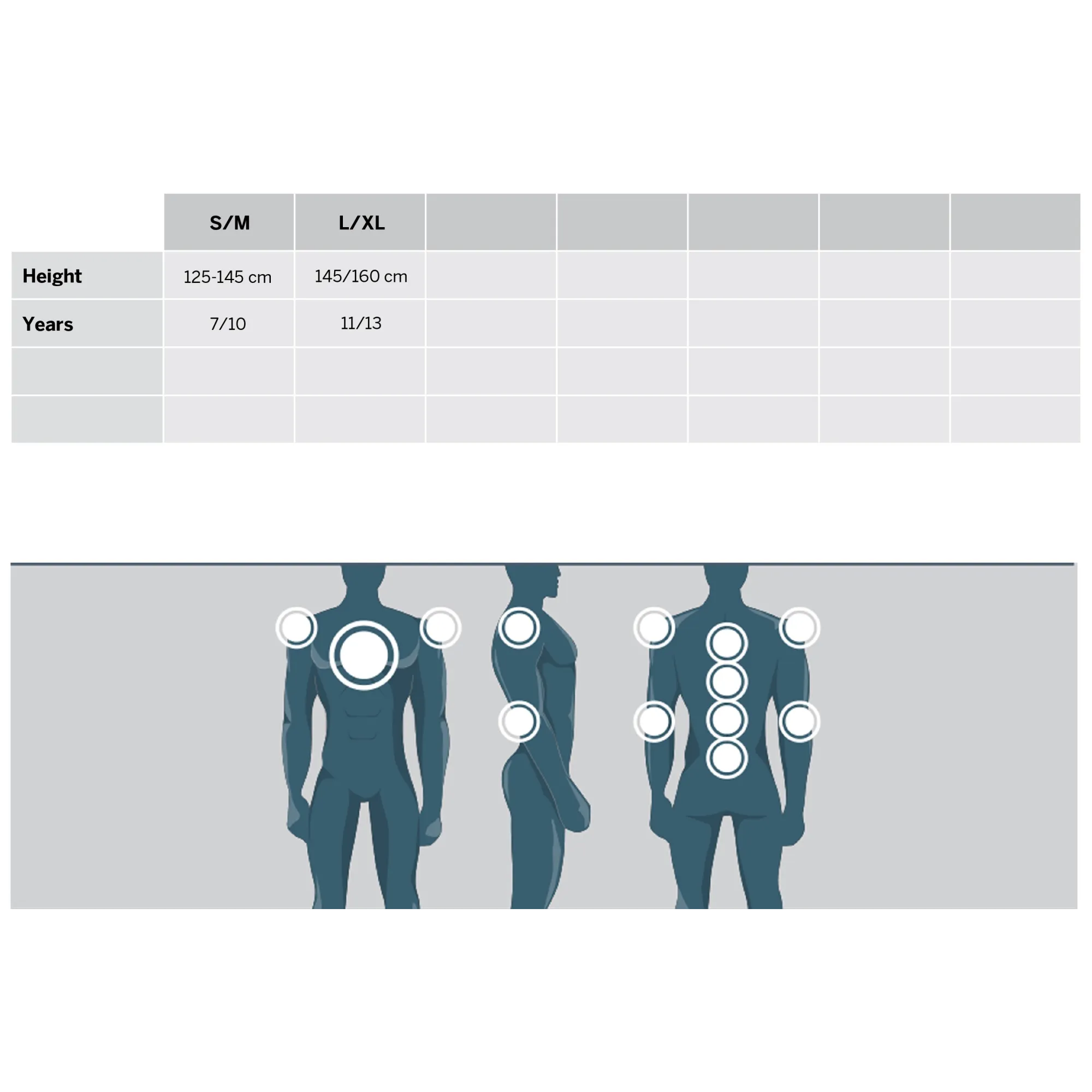 - Adattabilità a taglie corpo diverse grazie a regolazioni spalle (da 8 a 13anni altezza da 125 a 160cm)
